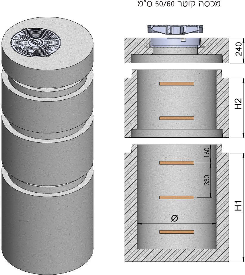 | בסיס עובי דופן 13.5 ס"מ גובה H1 |