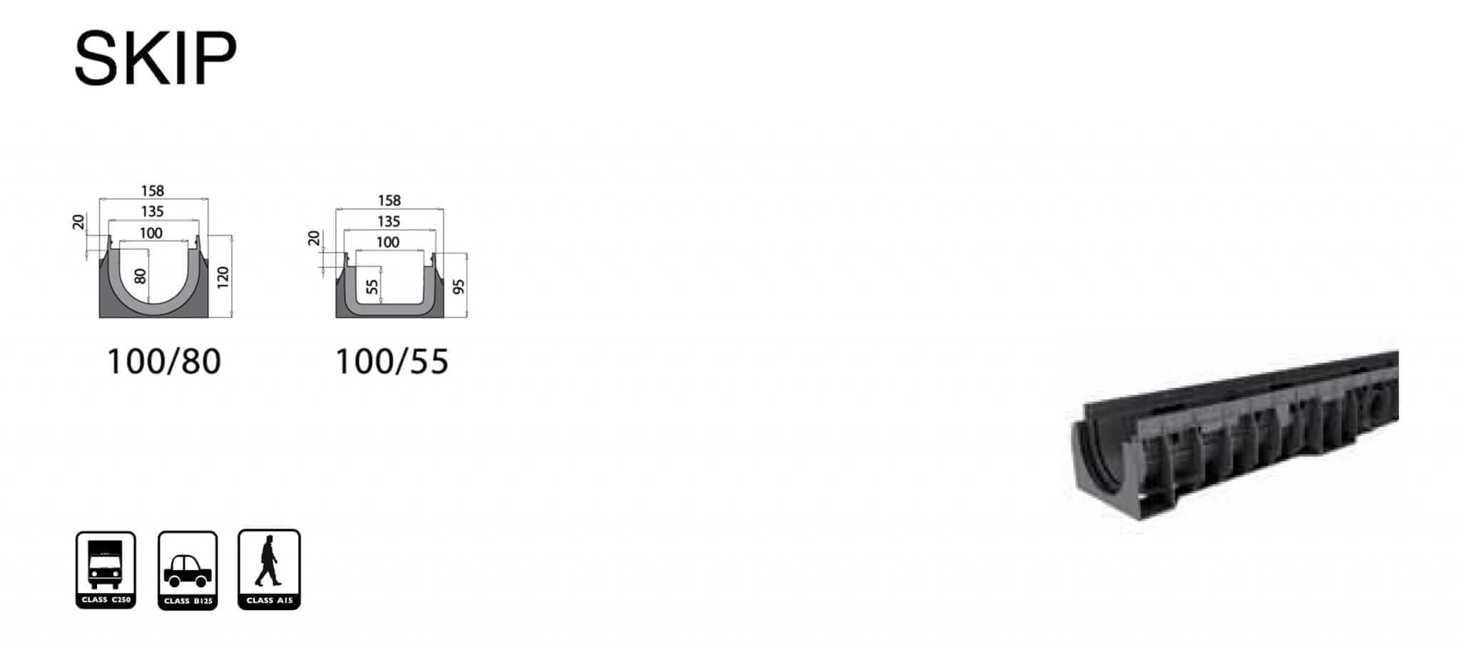SKIP – תעלות ניקוז פוליאתילן PE-HD + רשת ניקוז