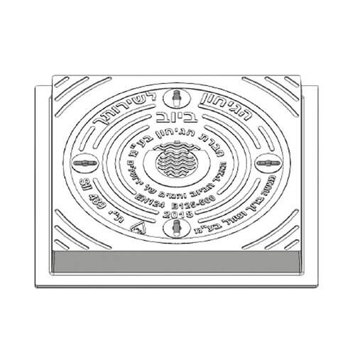 מיוצר עפ"י ת"י 489-2 חלק 2.2 , היתר מספר 109967 ותקן אירופאי EN124-2 ניתן לייצר את המכסים עם סמל אמנותי על פי דרישת לקוח. לפרטים טכניים להתקנת מכסים לחץ כאן. המכסים צבועים בצבע אנטירוס שחור (נגד חלודה).