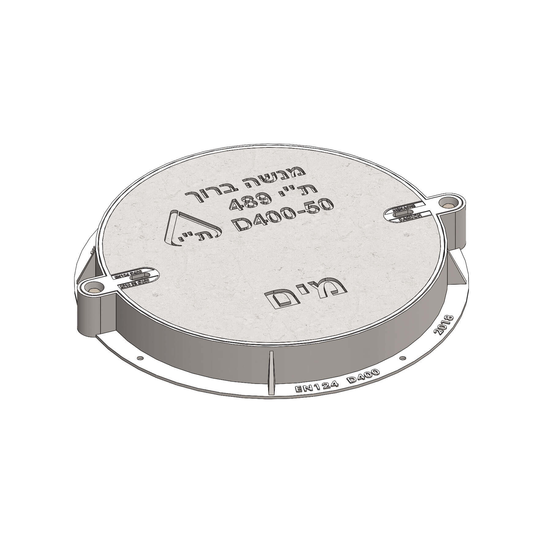 מיוצר עפ"י ת"י 489-2 חלק 2.2 , היתר מספר 109967 ותקן אירופאי EN124-2 ניתן לייצר את המכסים עם סמל אמנותי על פי דרישת לקוח. לפרטים טכניים להתקנת מכסים לחץ כאן. המכסים צבועים בצבע אנטירוס שחור (נגד חלודה).