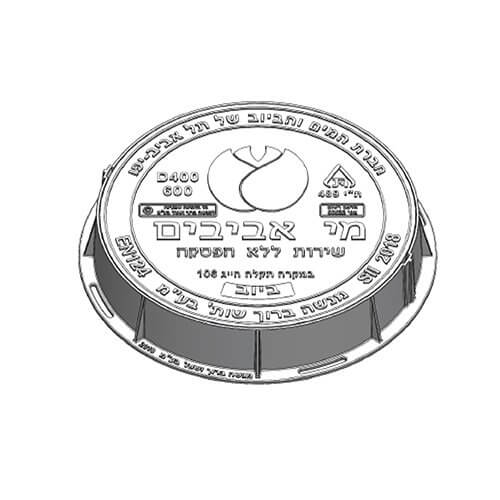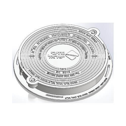 מיוצר עפ"י ת"י 489-2 חלק 2.2 , היתר מספר 109967 ותקן אירופאי EN124-2 ניתן לייצר את המכסים עם סמל אמנותי על פי דרישת לקוח. לפרטים טכניים להתקנת מכסים לחץ כאן. המכסים צבועים בצבע אנטירוס שחור (נגד חלודה).