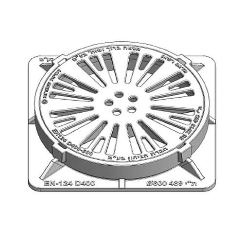 מיוצר עפ"י ת"י 489-2 חלק 2.2 , היתר מספר 109967 ותקן אירופאי EN124-2 ניתן לייצר את המכסים עם סמל אמנותי על פי דרישת לקוח. לפרטים טכניים להתקנת מכסים לחץ כאן. המכסים צבועים בצבע אנטירוס שחור (נגד חלודה).